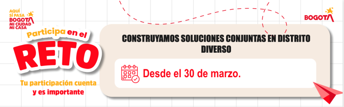 Déjanos tus ideas, vota por las mejores respuestas de la comunidad o crea junto a otros usuarios respuestas a los retos distritales.